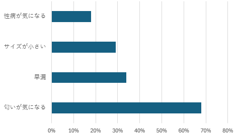 匂いが気になる: 68% 早漏:34% サイズが小さい:29% 性病が気になる:18% 女性が包茎に対して抱く感想は、「匂い」や「性病」といった衛生面に関するものが大半を占めます。 また、「早漏」や「サイズが小さい」といった、性生活の満足度に関わる点も気にしていることが分かりました。 これらの悩みは、手術によって改善が期待できるものです。