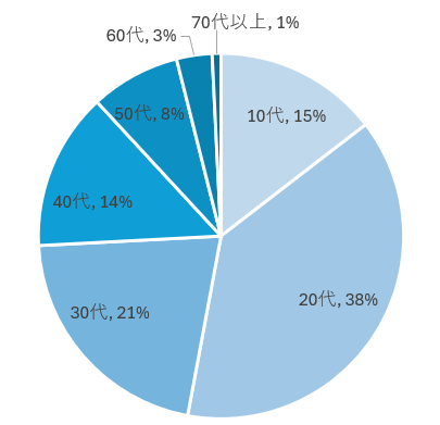 相談件数だけだと、10代,20代で50%を超えます。 見栄えが気になり始める年代であったり女性との性的接触の多くなる年代なので悩みが顕在化するタイミングが多いようです。また、治すなら早いに越したことがないため若いうちから相談をされるケースが多い傾向です。