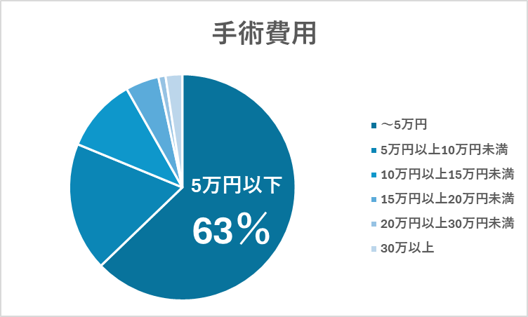 アンケート結果によると、「5万円以上〜10万円未満」が63%と圧倒的に多いという結果になりました。次いで「10万円以上〜15万円未満(18%)」「15万円以上〜20万円未満(11%)」が続きます。 一方で「20万円以上〜30万円未満」や「30万円以上」と答えた人は少数派で、全体のわずか数%にとどまりました。 このことから、包茎手術は10万円前後で受けている人が最も多く、費用相場としては5万円〜15万円程度に集中していることがわかります。 費用面は大きな不安要素ですが、こうしたデータを見ると「想像より高額ではなかった」と安心する人も多いのではないでしょうか。