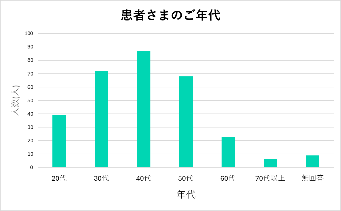 亀頭増大手術を検討・経験した方の年代は、30〜50代が中心となっており、特に40代の回答が最多でした。20代や60代以上の回答も一定数見られるものの、加齢による見た目の悩みや、パートナーとの関係改善を目的とした関心が高まる年代に集中している傾向がうかがえます。70代以上や無回答も少数ながら存在しており、幅広い層からの関心があることがわかります。